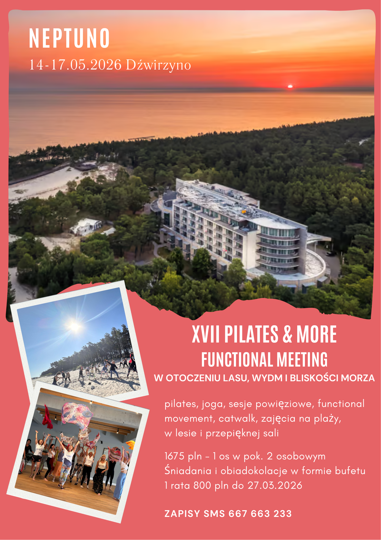 Odkryj magię ruchu podczas naszego wyjątkowego, kobiecego wyjazdu. Sesje powięziowe aktywujące cały układ mięśniowo-stawowy, Pilates Fascial Movement, Pilates Functional, Pilates Flow, Pilates Equipment, Joga oraz wiele innych technik. Wszystkie sesje kształtują i rozwijające świadomość do wykonywania wszystkich czynności dnia codziennego. Efektywniej, bezpieczniej, z gracją i elegancją. Otwórz się na pełnię możliwości swojego ciała i umysłu!